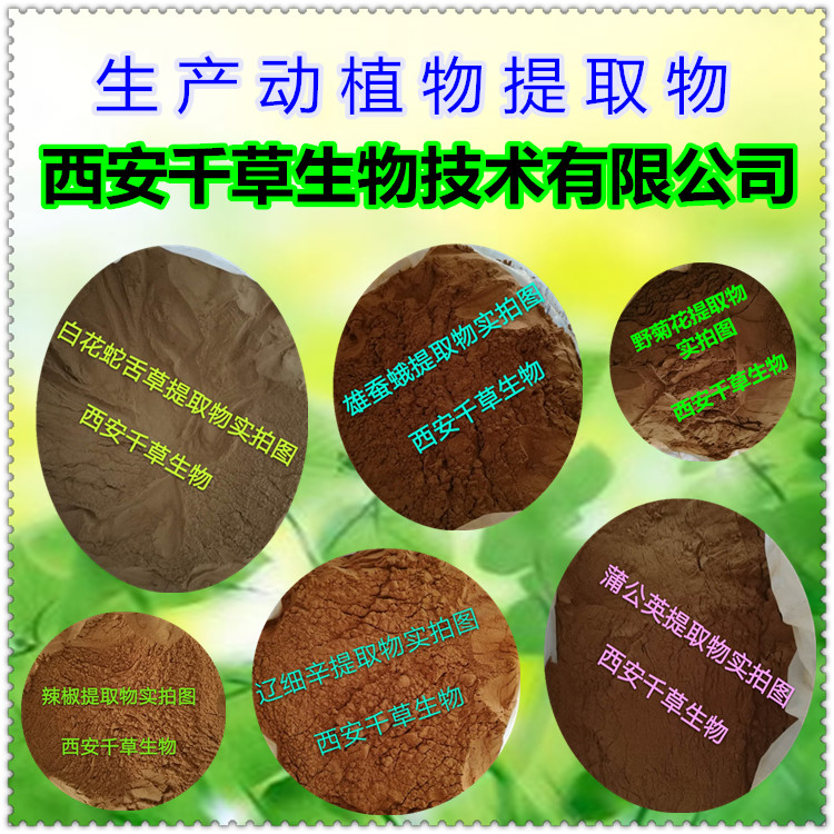 西安千草生物,擁有全套304食品級(jí)不銹鋼設(shè)備,靠實(shí)體興業(yè)。自主研發(fā)生產(chǎn)各類純天然動(dòng)植物提取物。經(jīng)過不斷的實(shí)踐與摸索,跳出了同質(zhì)化競爭,已經(jīng)實(shí)現(xiàn)了產(chǎn)品的差異化定制生產(chǎn)。品類新穎,產(chǎn)品健康,包裝精良,滿足了不同客戶的不同要求。可靠而穩(wěn)定的產(chǎn)品質(zhì)量,贏得了國內(nèi)外廣大客戶的首肯與信賴。